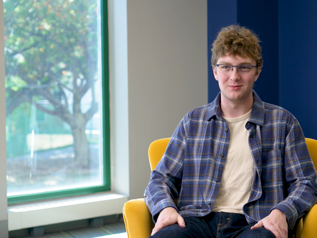 The ornament features College Hall and was designed by Jadyn Carrasquillo-Martinez, ’25, a senior in our Digital Arts program.