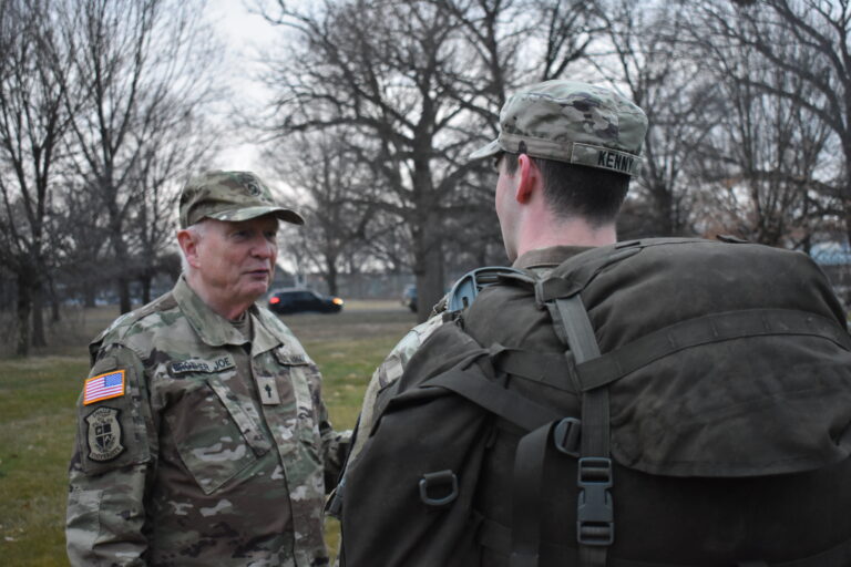 If you have sharp eyes, you might detect the name of “Brother Joe” and “U.S. Army” on the uniform of the man at left. Contradiction in terms? To some, yes……but to Lasallians, never! He is Brother Joseph Willard, the longtime Advisor for the U.S. Army ROTC program for La Salle University. He is pictured with Jakob Kenny, currently a Senior at La Salle. Cadet Kenny is the Cadet Battalion Commander for the ROTC’s “Task Force Dragon,” in which all University Cadets are enrolled. This photo dates from January or February 2023, and the setting is at a “field lab,” located near Centennial Lake, which is part of Fairmount Park in West Philadelphia. The ROTC’s field labs take place on Thursday mornings, usually between 05:30 and 11:00 hours.