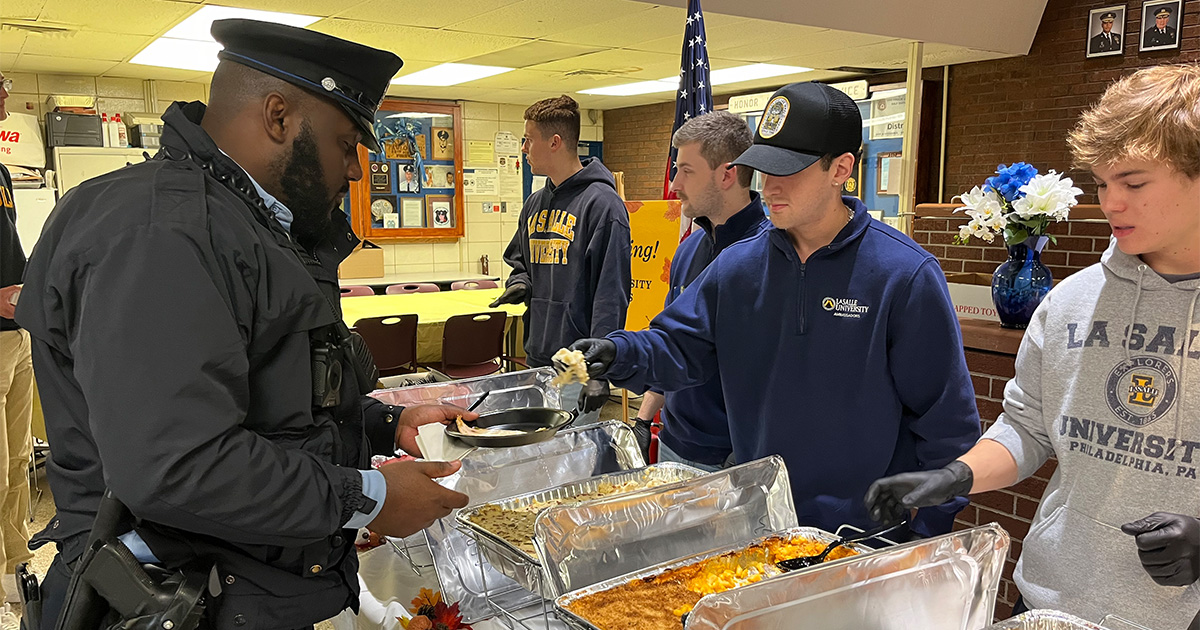 La Salle University continued its annual holiday tradition of students and staff providing Thanksgiving meals to the first responders who serve the campus and the neighboring community.