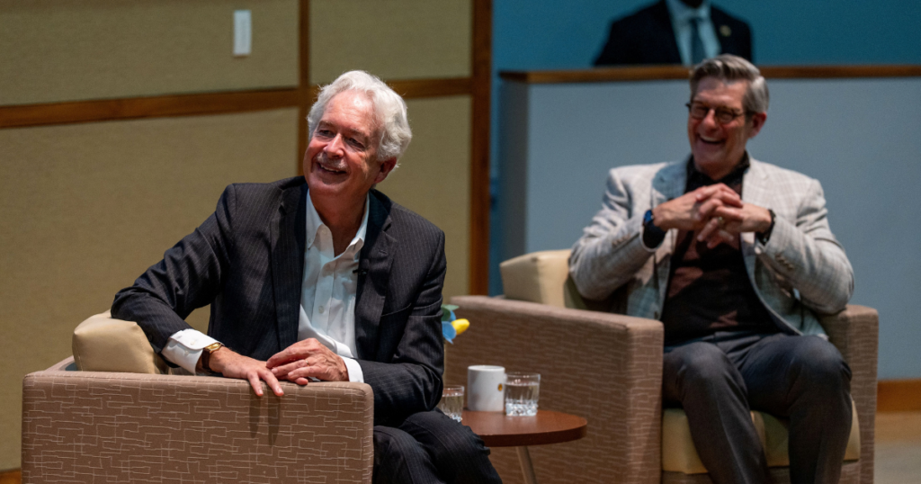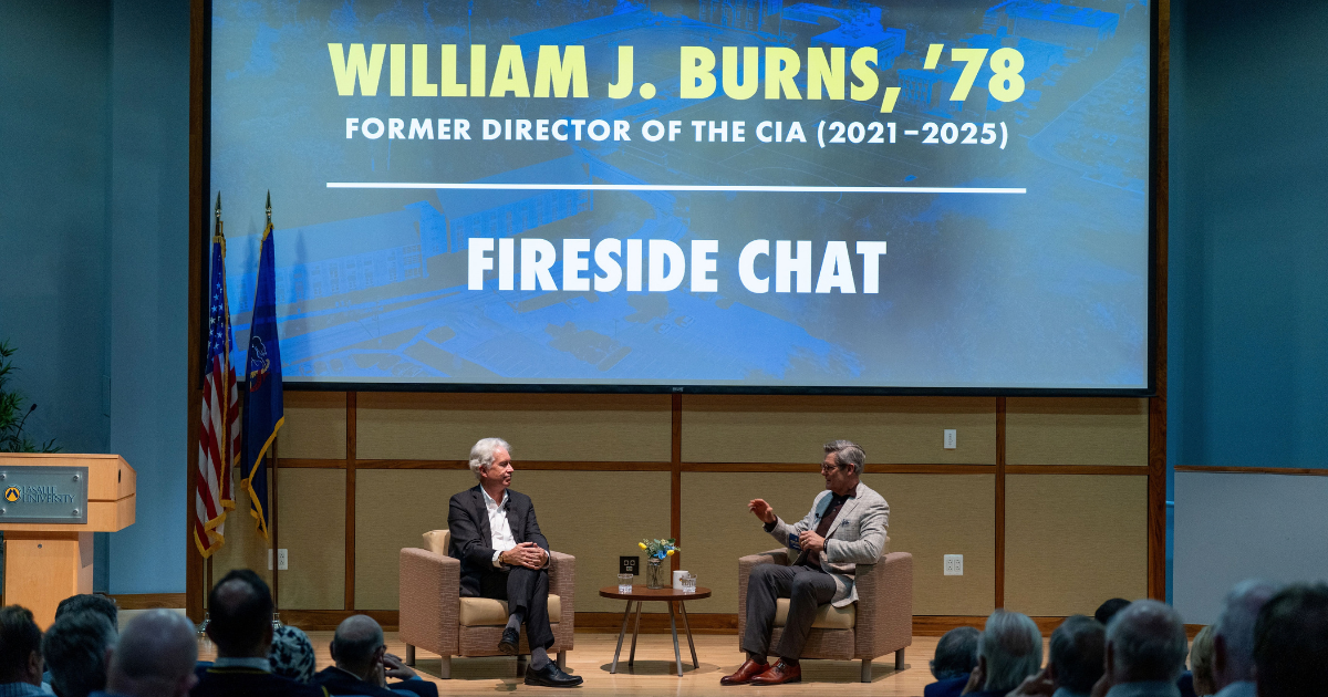 La Salle University welcomed former CIA Director and Alumnus William J. Burns, ’78, to campus for a Fireside Chat hosted by President Daniel J. Allen, Ph.D.