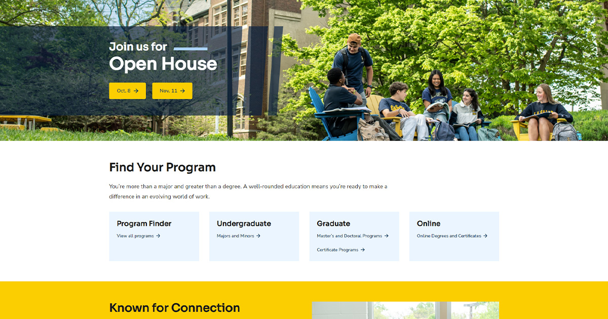 The new site provides a consistent, seamless, and enhanced user experience with a primary focus on prospective students. Users will be met with a contemporary design, easier navigation, and personalized pages for admissions, schools, programs, and institutional news.