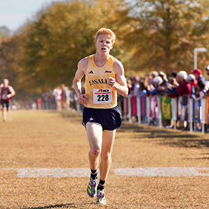 For the first time in 16 years in the Atlantic-10 Conference, the men’s and women’s individual titles were both awarded to the same school—La Salle. Gwenno Goode, ’27, (top) and MacCallum Rowe, ’26, (right) each won their respective races decisively. They became the first La Salle duo to complete the individual sweep since 2006.