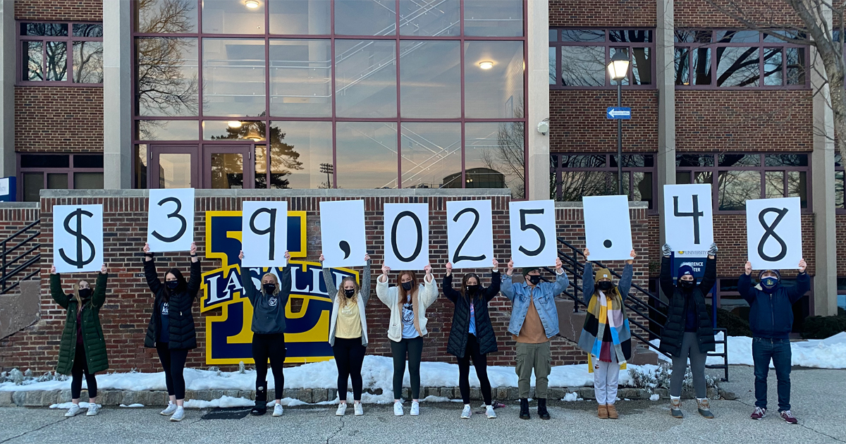 In previous years, La Salle students have gathered on campus in the Union Ballroom for a night of dancing and philanthropy. The coronavirus pandemic prevented such revelry—and also reduced the quantity of fundraising prizes they could offer as incentivization.