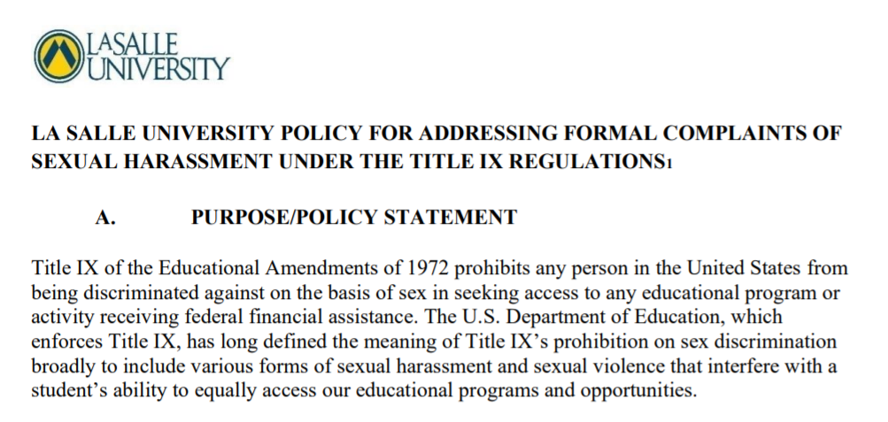 La Salle has two policies directly related to sexual misconduct/Title IX