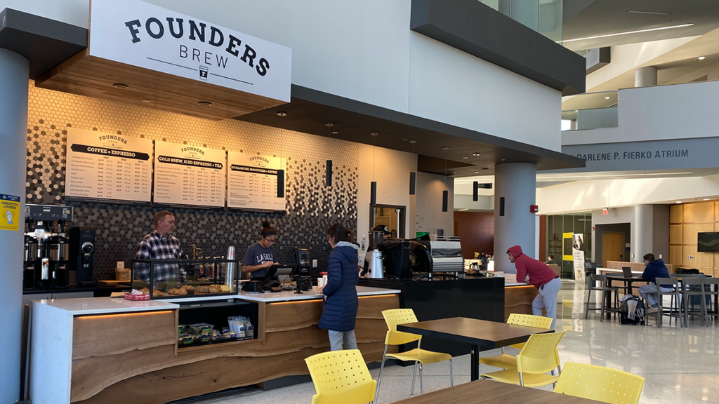 Located in the La Salle School of Business Building, this is a beautiful location to pick up your favorite coffee beverage.